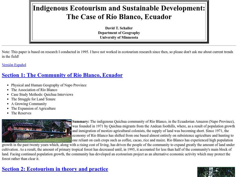 This scholarly article overviews how ecotourism is tied to a survey of sustainable development in the case of Rio Blanco, Ecuador.
