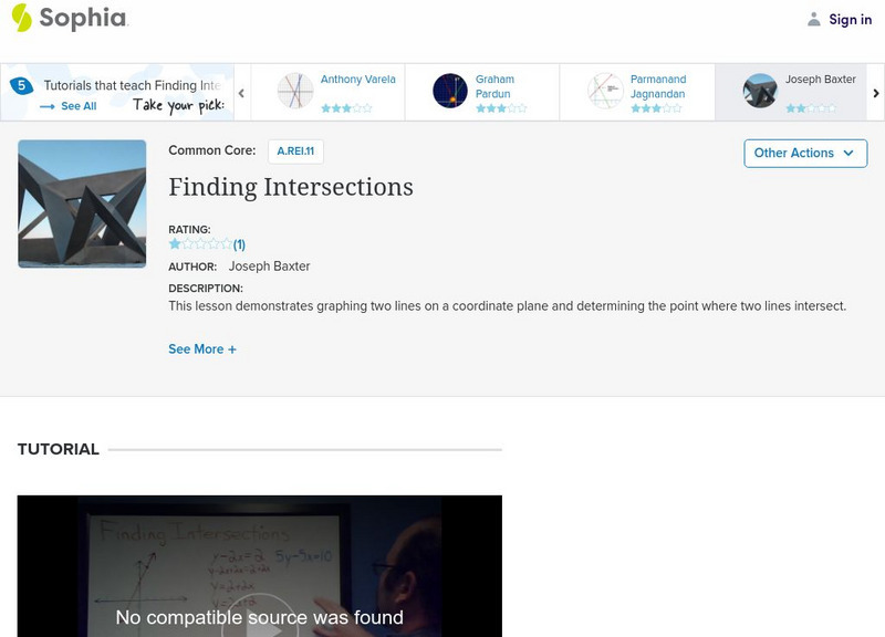 This lesson demonstrates graphing two lines on a coordinate plane and determining the point where two lines intersect. It is 1 of 5 in the series titled "Finding Intersections."