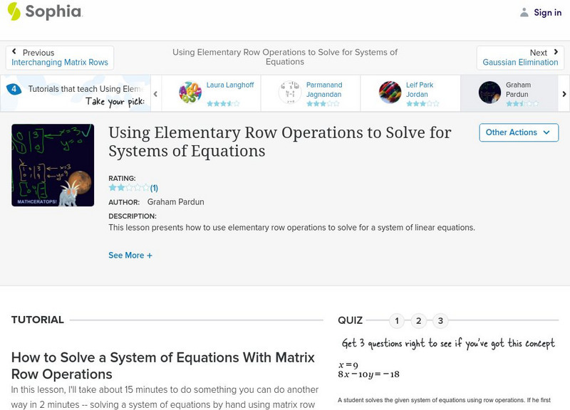 Sophia: Using Elementary Row Operations to Solve for Systems of Equations