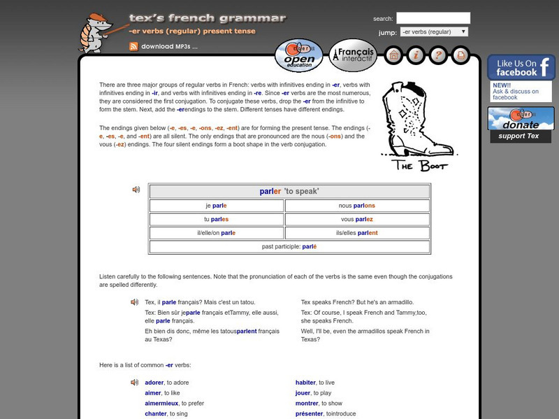 Wonderful site with clear explanation of regular "re" verbs, with written and audio usage examples and interactive practice exercises.
