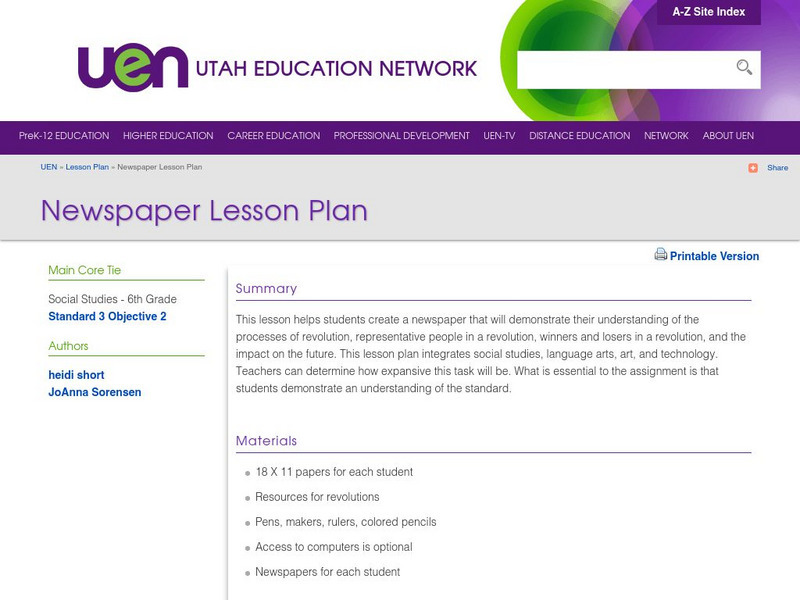 This lesson engages students developing a newspaper. Students will demonstrate their understanding of the term "revolution" as they create their newspaper.