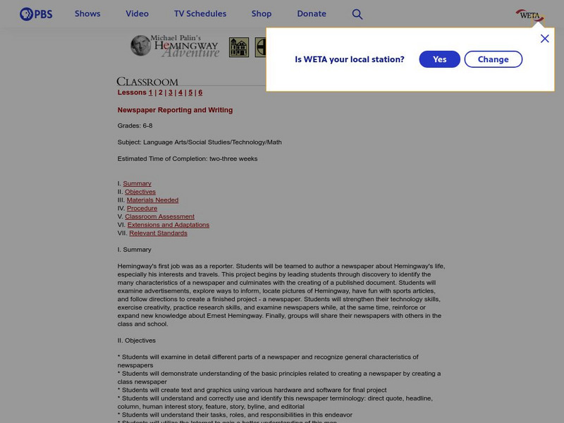 In this lesson, middle schoolers explore the many characteristics of a newspaper and try their hands at becoming reporters. They can expand their knowledge about Ernest Hemingway, and author a newspaper focusing on his life, especially...