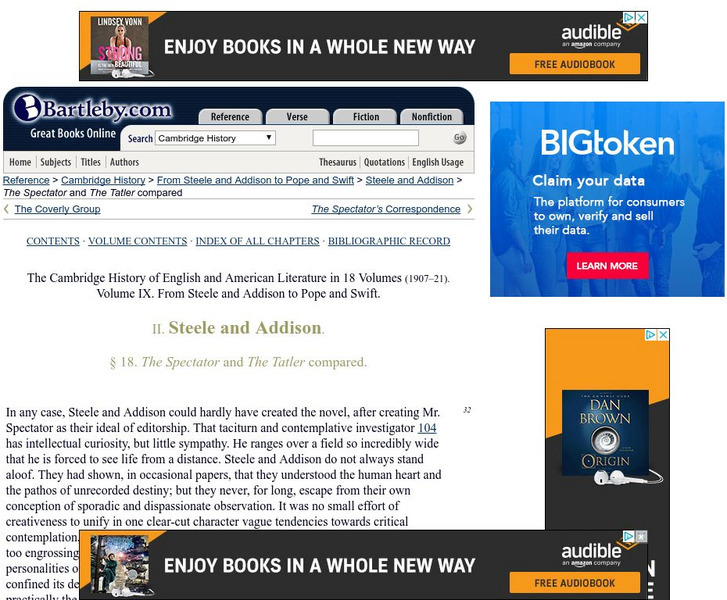 Bartleby.com: The Spectator and the Tatler Compared