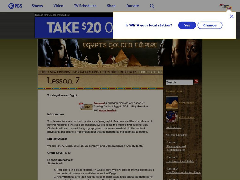 Pbs Teachers: Touring Ancient Egypt (Geography Lesson Plan)