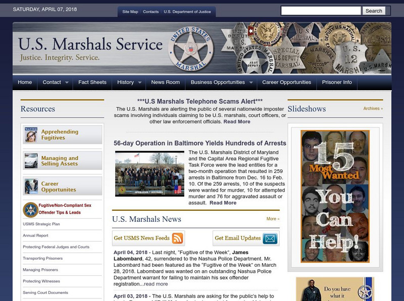 Homepage for the United States Marshals Service. There are many helpful links on this page - history, major cases, and information on becoming a Deputy.