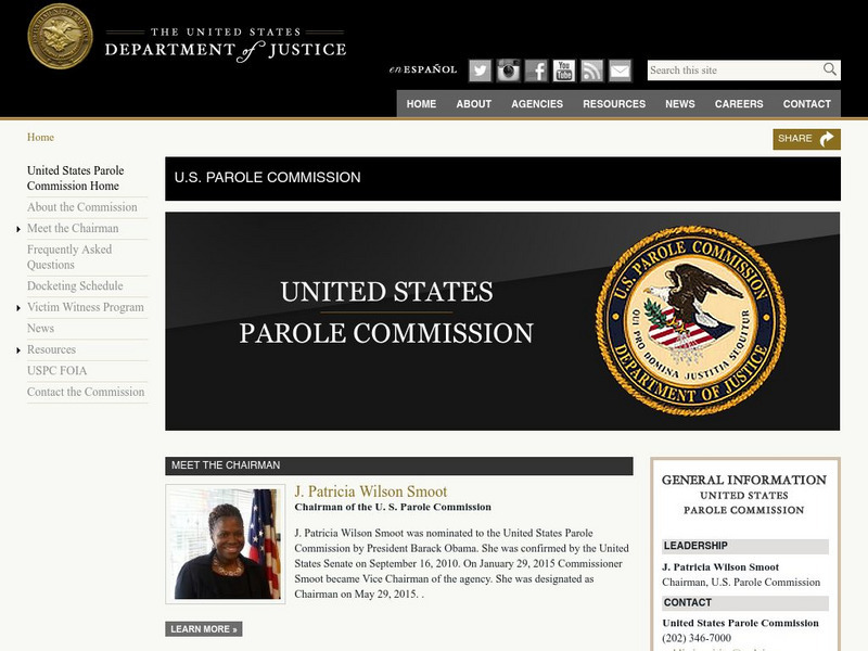 Homepage of the United States Parole Commission which is part of the Department of Justice.