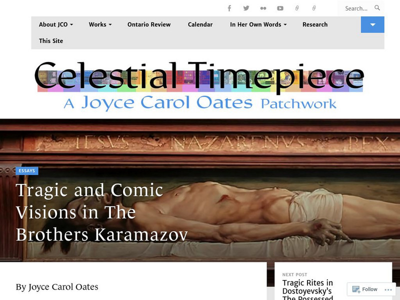 This site features an article entitled "Tragic and Comic Visions in The Brothers Karamazov" written by contemporary author Joyce Carol Oates. The article originally appeared in The Journal of Aesthetics and Art Criticism, Winter 1968-1969.