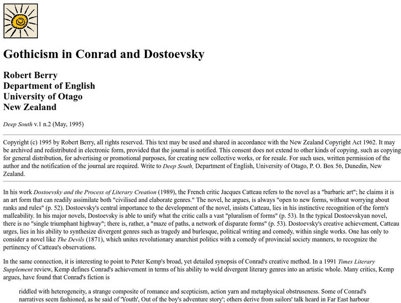 University of Otago: Gothicism in Conrad and Dostoevsky