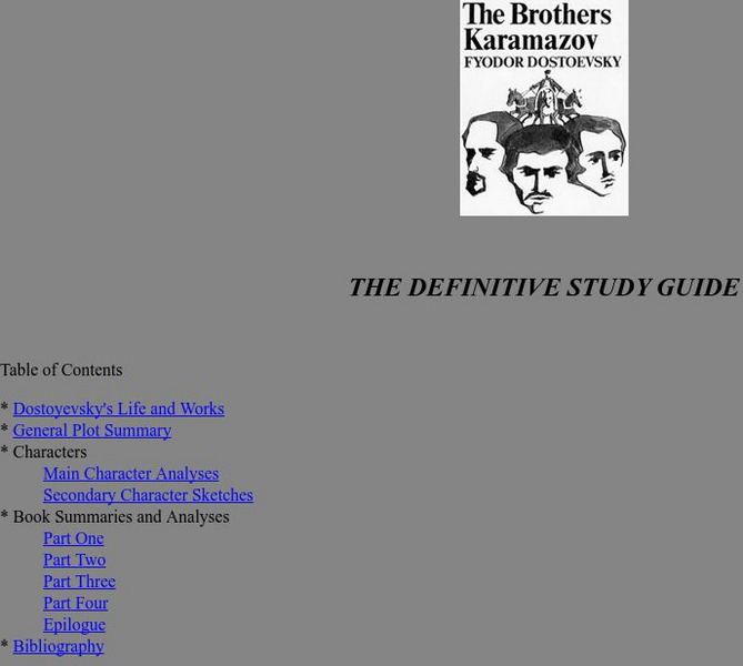 Middlebury College provides this site authored by a professor of Russian language and literature that provides summaries and analyses for all sections of The Brothers Karamazov, a biography of Dostoevsky, character analyses, and a...