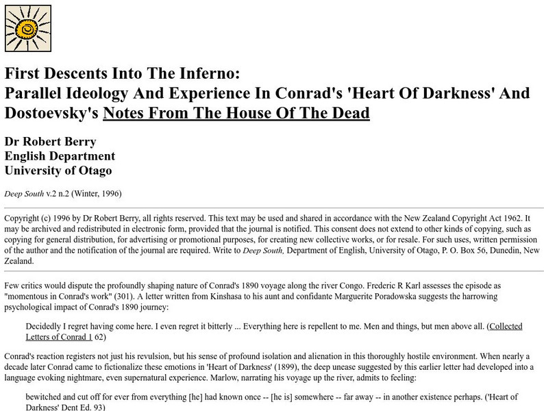 This site from the University of Otago contains the text of a scholarly essay written by English professor Robert Berry. The article originally appeared in Deep South, a publication of the English department at the University of Otago.