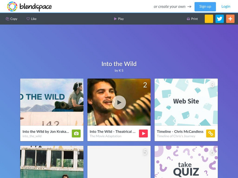 A six-part learning module with links to images, a video, a website, and a quiz to use while reading John Krakauer's Into the Wild.
