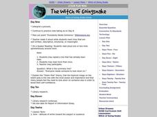 Students complete literary analysis and writing activities using The Witch of Goingsnake. In this literary analysis lesson, students interpret a proverb, read poems, complete a quaker reading, and complete research for the lesson....