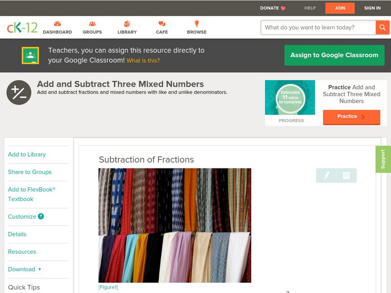 [Free Registration/Login may be required to access all resource tools.] In this lesson students subtract fractions and mixed numbers with like and unlike denominators. Students examine guided notes, review guided practice, watch...