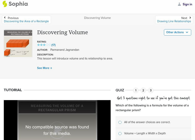 This video lesson introduces the concept of volume by relating it to area. The tutorial provides detailed examples.
