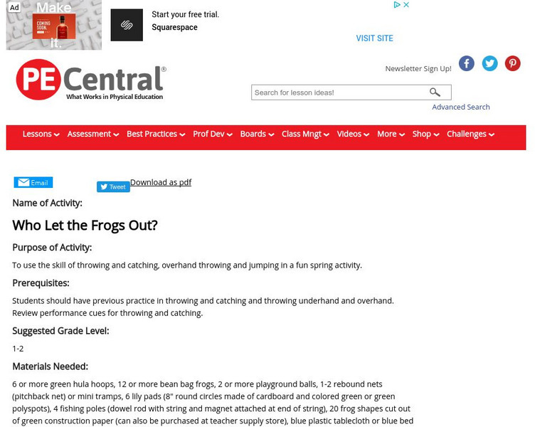 Pe Central: K 2 Pe Lesson Ideas: Who Let the Frogs Out?