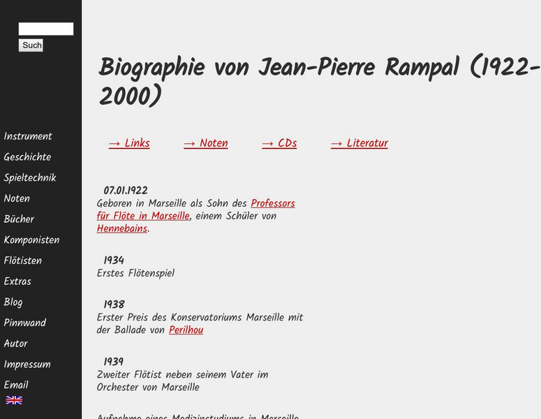 Here is a listing of facts about the classical musician and flutist, Jean-Pierre Rampal, whose popularity started "flute fever."