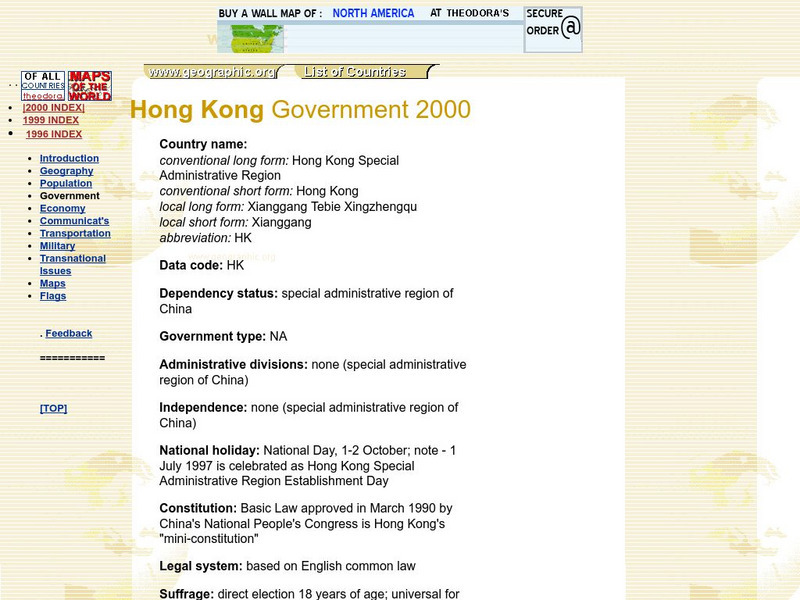 This fact sheet provides information about the government of Hong Kong, now part of China.