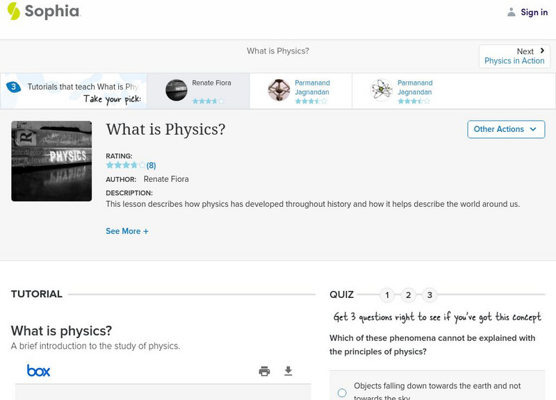This lesson describes how physics has developed throughout history and how it helps describe the world around us. It is 4 of 6 in the series titled "What is Physics?"