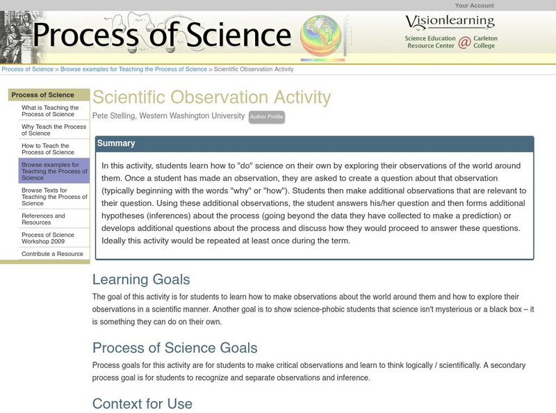 For this structured exercise, students are asked to observe the world around them and make an observation about any sort of process they see. They then ask a how or why question about their observation, and follow that by three or more...
