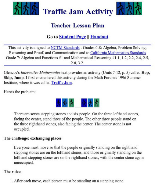 The Math Forum: Traffic Jam Activity Lesson Plan