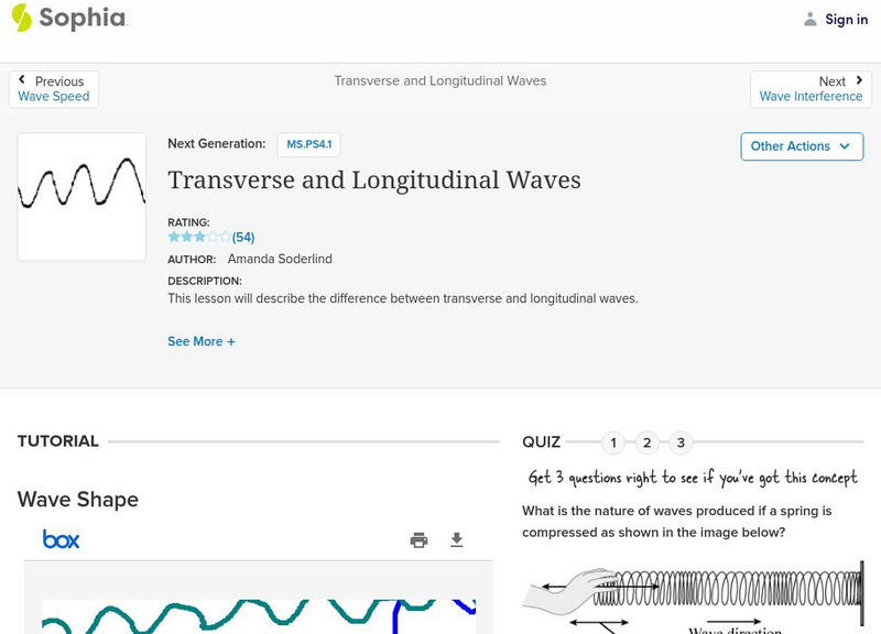 Ninth graders are introduced to the components of compressional and transverse. They practice answering speed problems involving different mediums that waves travel trhough and then review the wave PowerPoint. They then visit physics...