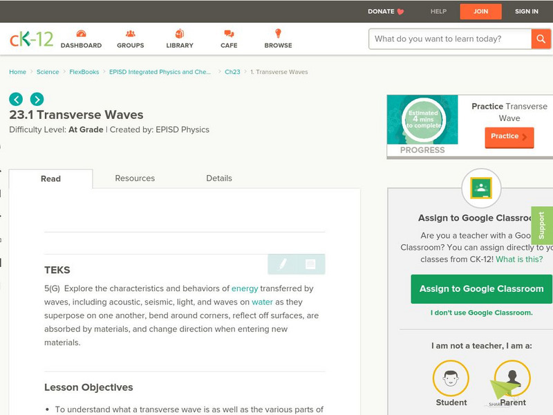 Through informational text, interactive activities, and practice problems, students learn about the properties of waves, and how they transfer energy.