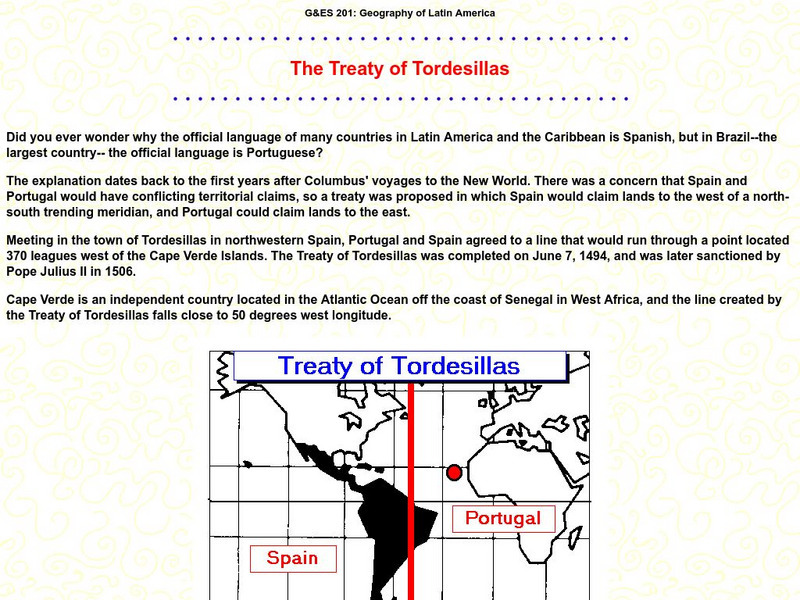 Some very basic information on the Treaty of Tordesillas and geographic information related to South America.