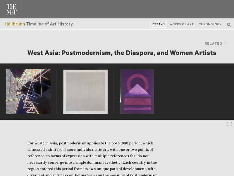 Ten thousand years of art produced in West Asia is displayed at this Metropolitan Museum site in timeline format. The earliest examples date from 8000 B.C., with information on key historical events as well as details of each artifact.
