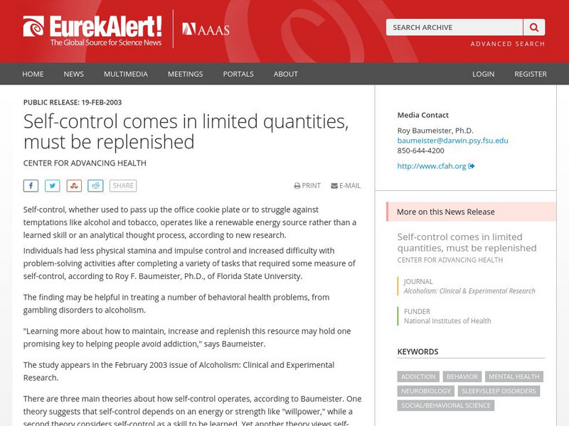 Aaas: Self Control Comes in Limited Quantities, Must Be Replenished