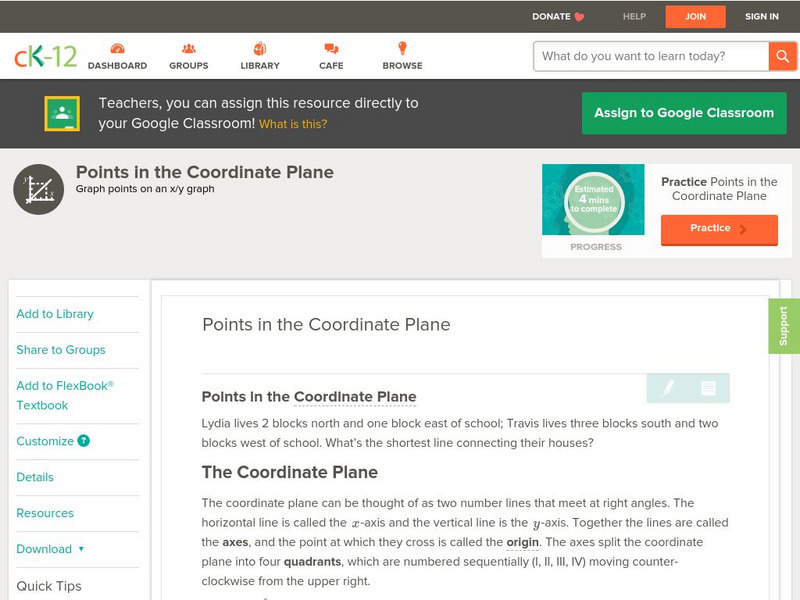 [Free Registration/Login may be required to access all resource tools.] Identify the coordinates of a point and plot points in the coordinate plane.