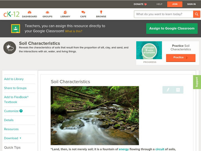 [Free Registration/Login may be required to access all resource tools.] Describes the characteristics and types of soil.