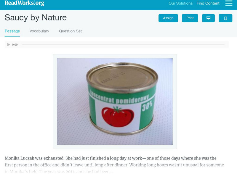 [Free Registration/Login Required] An informational text about friends who worked together to create a company that makes organic sauces. A question sheet is available to help students build skills in reading comprehension.