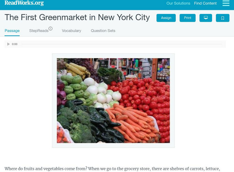 [Free Registration/Login Required] This passage describes the history behind the first greenmarket for produce in New York City. This passage is a stand-alone curricular piece that reinforces essential reading skills and strategies and...