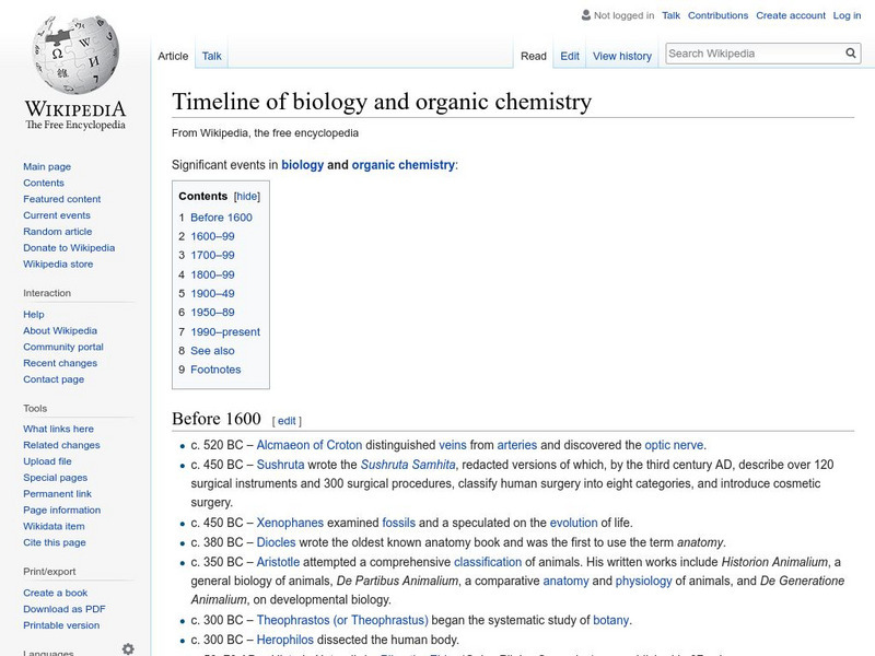 Wikipedia: Timeline of Biology and Organic Chemistry