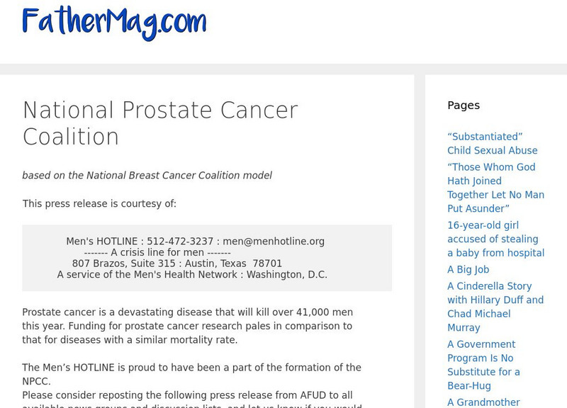 This organization has a variety of information and provides links to other resources related to prostate cancer.