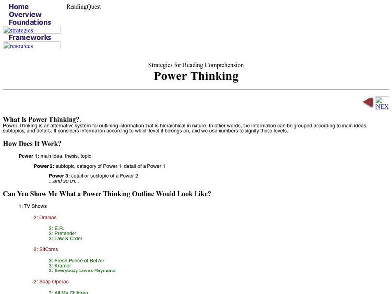 Reading Quest: Strategies for Reading Comprehension: Power Thinking