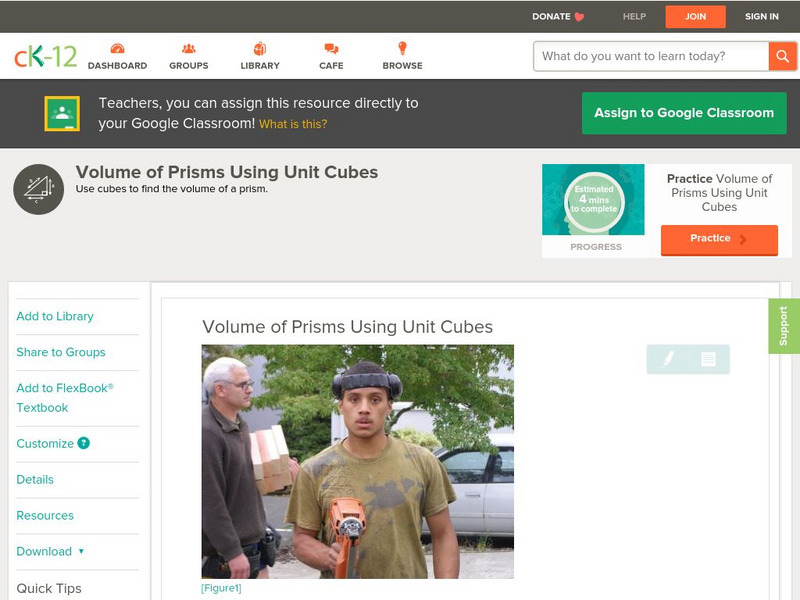Ck 12: Geometry: Volume of Prisms Using Unit Cubes