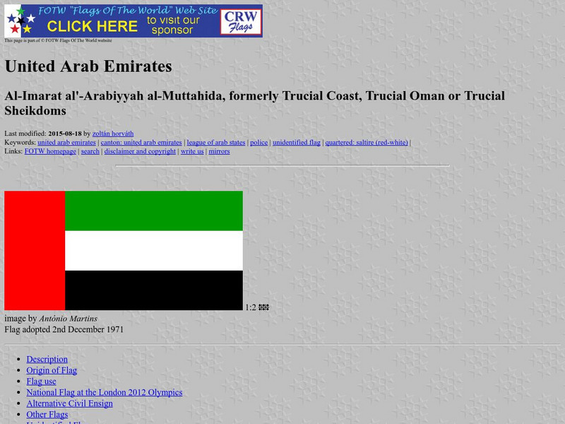 This site from Flags of the World provides an image and description of the flag of the United Arab Emirates, and links to other United Arab sites.