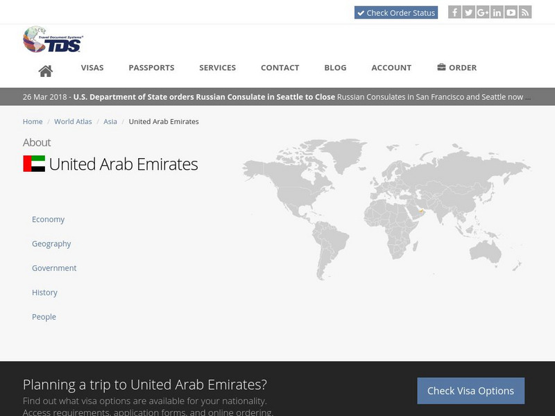 Explore United Arab Emirates' history, capital, flag, climate, terrain, people, economy, and population on this site.
