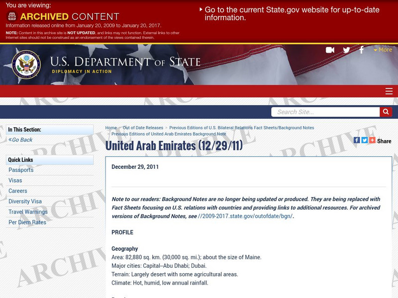 This resource offers information on both the history of the United Arab Emirates as well as its relationship with the U.S. It gives a very complete and informative description, and focuses on respect for human rights in United Arab...