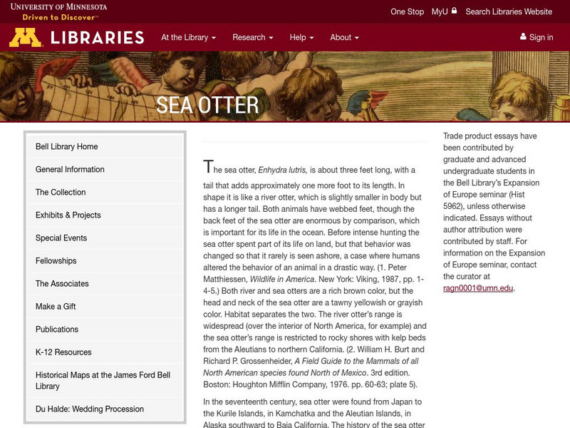 Analysis of the history of the sea otter in North America, focusing on its role in the European fur trade of the late 18th Century, this University of Minnesota web page is concise but thorough. The nations most involved in the...