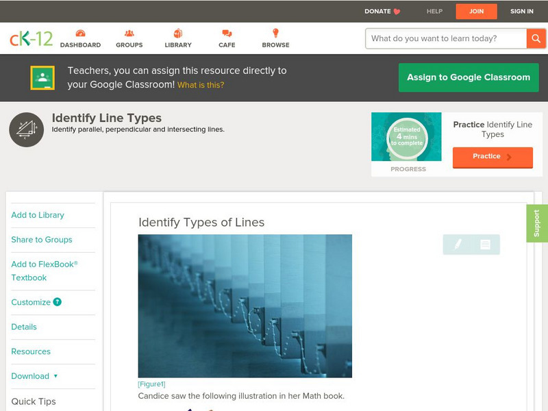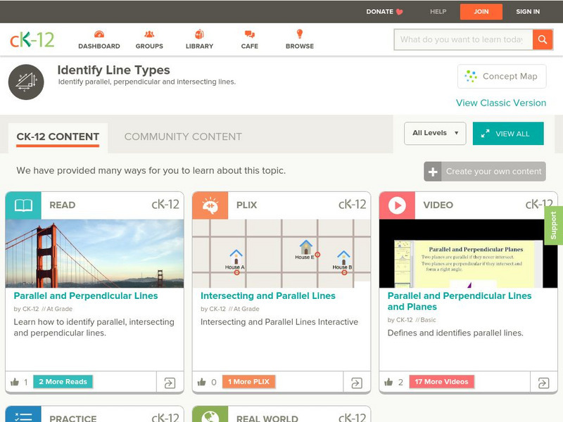 [Free Registration/Login may be required to access all resource tools.] Identify intersecting, parallel and perpendicular lines in a plane