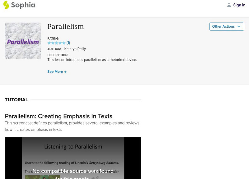 This lesson introduces parallelism as a rhetorical device. This tutorial lesson shares a short screencast [7:03] with the lesson's content.
