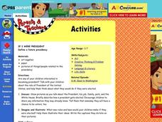 Students look at pictures of the US president, his job, family and the White House. They draw and write about the new rules and laws that they would make if they were elected president.