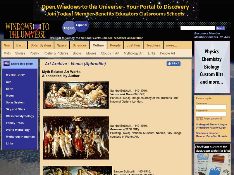 A treasure trove of images of Venus, the Roman goddess of love and beauty. Among the more famous artworks displayed at this site include Sandro Botticelli's "The Birth of Venus," and "The Venus de Milo," the work of an unknown sculptor.