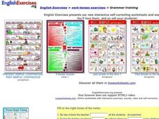 In this online interactive English skills worksheet, students respond to 45 fill in the blank and multiple choice questions about verb tenses. Students may submit their answers to be scored.