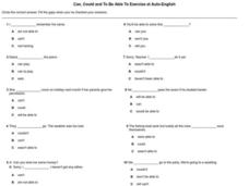 In this online grammar instructional activity, students read the sentences and circle the correct verb answer from the choices of can, could, and to be able to. Students complete 10 exercises.