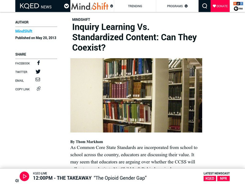 Kqed: Mind Shift: Inquiry Learning vs. Standardized Content: Can They Coexist?
