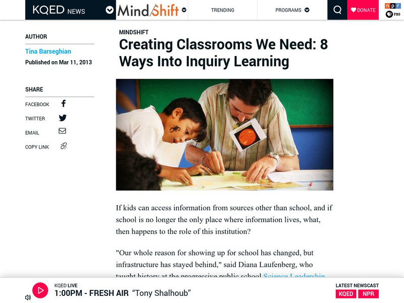 Kqed: Mind Shift: Creating Classrooms We Need: 8 Ways Into Inquiry Learning