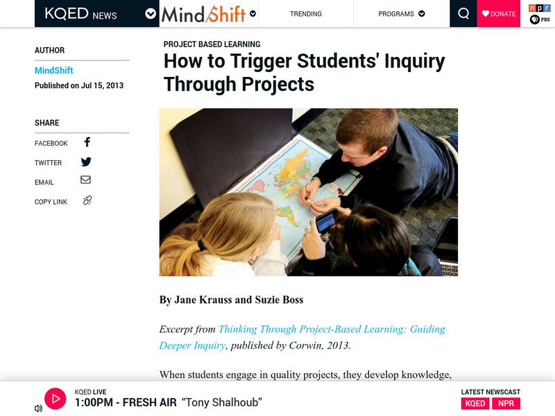 Kqed: Mind Shift: How to Trigger Students' Inquiry Through Projects